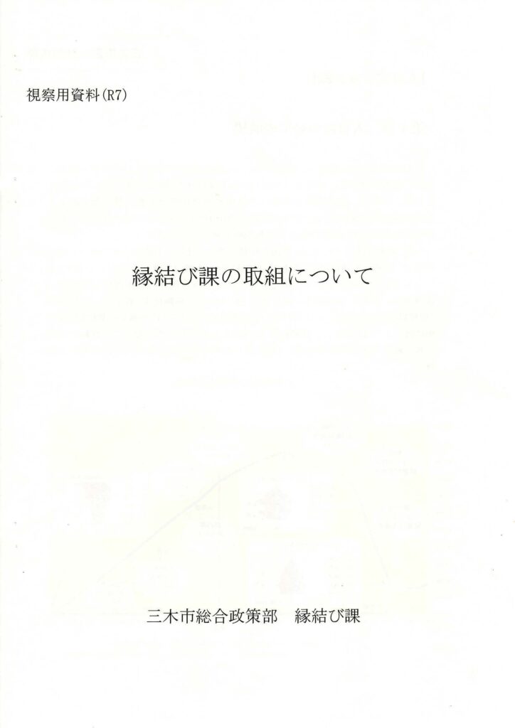 本視察は、人口減少・少子化が進行する中で、三木市が未婚化対策を地方創生の柱の一つとして位置付け、長年にわたり実施している「縁結び事業(みきで愛サポートセンター)」について、その制度設計、運営体制、成果および課題を把握し、今後の政策検討の参考とすることを目的として実施した。